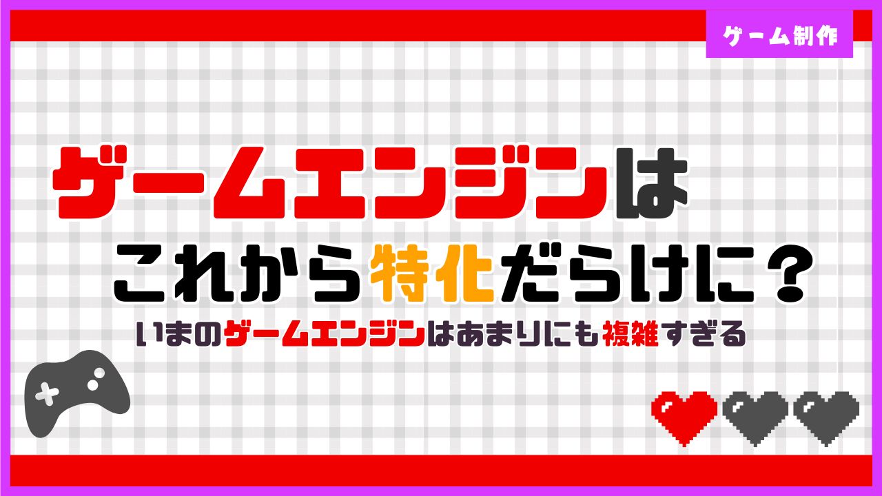 最近のゲームエンジンは、UnityやUnreal Engine 5(UE5)に代表されるように、非常に多機能で万能。 けどその「なんでもできる」が、かえって様々な問題を引き起こしているのではないでしょうか。 ゲーム制作者が利用者より利益ばっか追求もあるけど、でも...