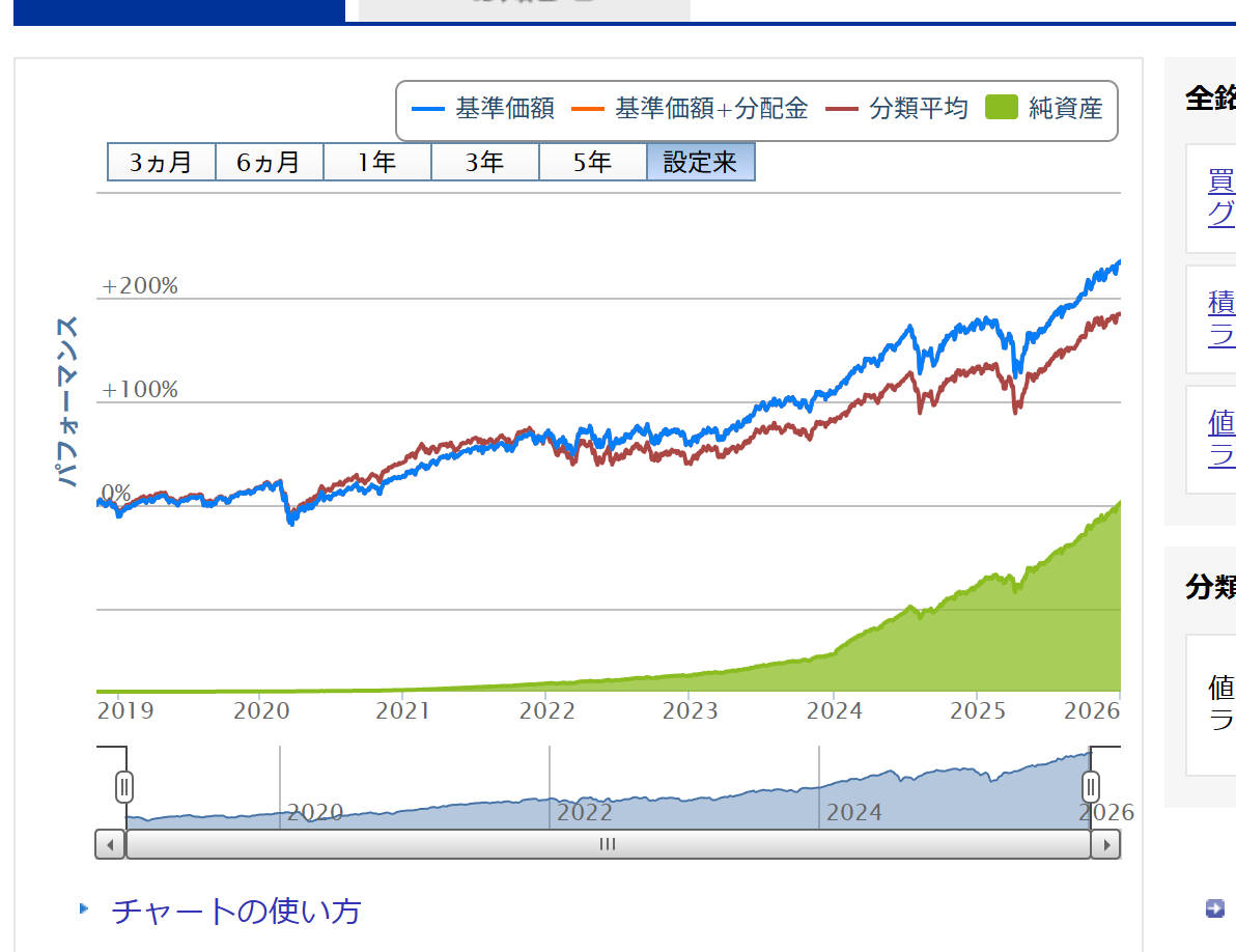 今は楽天オルカンは高いけど、いずれにしろ純資産総額が積み上がり、運用が安定してくれば、この差は時間の経過とともに縮小していくのが通例です。
